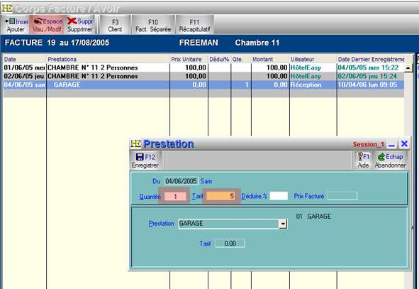 pour modifier une prestation, sélectionner la ligne de la prestation correspondante, puis pour modifier, rentrer les nouveaux montants, et valider par